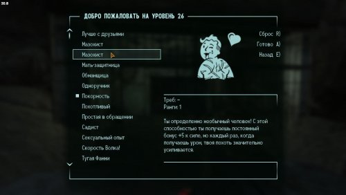 Этот мод добавляет систему сексуальных повреждений. Чрезмерный разврат без какой-либо подготовки может привести к суровым дебафам.
