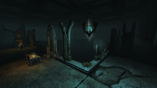 3. Войдите в подвал и там найдете странную статую. Активируйте ее и войдите внутрь