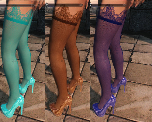Небольшой набор чулок разных цветов. Также тут есть и туфли на каблуке. Всего 45 вещей