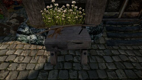 Стол для крафта - здесь можно создавать оружие и доспехи не из металла (кожаные или шкур). Также здесь можно создавать и одежду