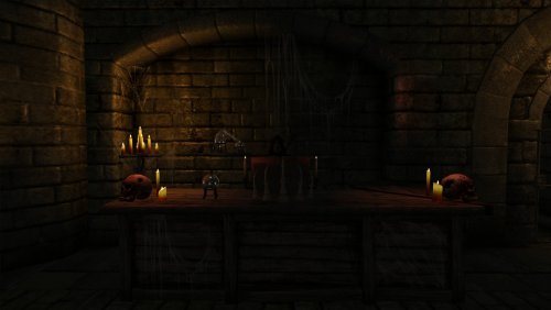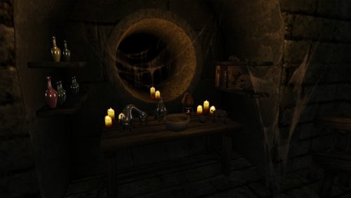 - алхимическая комната с набором инструментов мастера и ведьминым котлом, который раз в день дает усиление магии