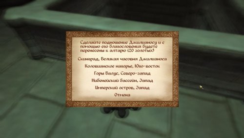 - в каждой часовне имеется канал (портал), с помощью которого можно попасть в несколько точек назначения. Стоимость одного сеанса телепорта составляет 20 золотых