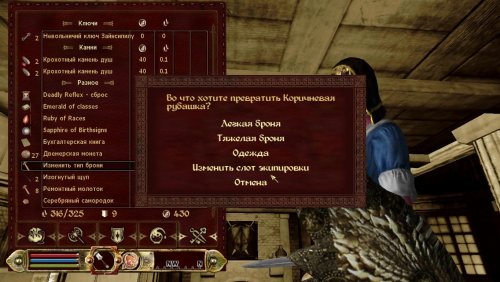 Можно изменять слот предмета (например, кольцо поместить в слот ног)