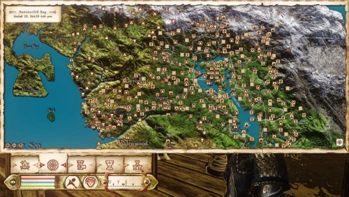 - 6 деревень, 5 домов ГГ (в том числен замок), 6 кемпингов, 7 постоялых дворов, сеть дорог, 3 крупных хозяйства, в том числе виноградники, множество мелких хозяйств, храмы, флора и фауна и т.д.