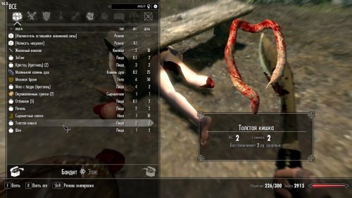 Ножи: их 3 штуки, для стройного, нормального и пухлого тела. С их помощью можно обезглавливать и расчленять живых людей. При использовании на трупах можно срезать мясо с их тела. Выпадающее мясо зависит от ножа, который вы использовали, и расы цели. Пока работает только на людях, эльфах и орках. (Аргониане и каджиты не поддерживаются)