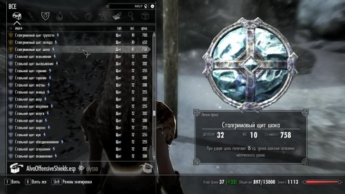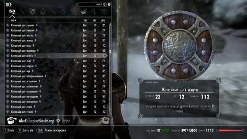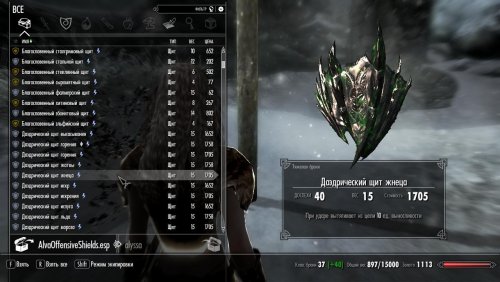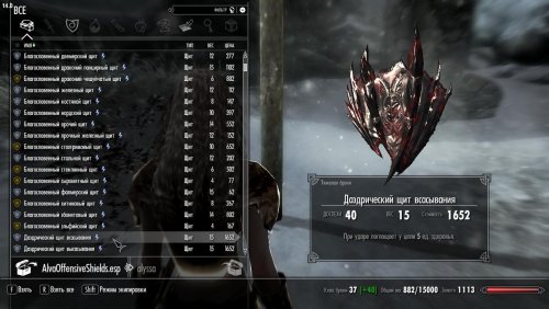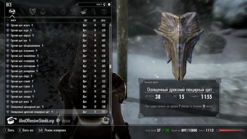 Alva's Offensive Shields  — небольшой, простой мод, разработанный для расширения универсальности щитов в боевых сценариях «меч и щит». Подобно тарчу кровожадности, найденному в Альфтанде, этот мод добавляет несколько новых щитов с  атакующими возможностями, разработанных для нанесения ударов врагам. Включены все материалы для щитов, в дополнение к материалам, добавленным DLC Dragonborn и Dawnguard