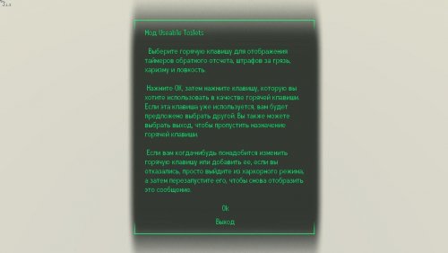Сначала копируем Useable Toilets Now with Hardcore Mode в папку с игрой (это замена ванильных туалетов) Потом устанавливаем Diaper Lovers' New Vegas (CBBE and Robert S)Rus 1.0.5. Активировать только UseableToilets.esp, UseableToiletsUninstalled.esp нужен для удаления мода