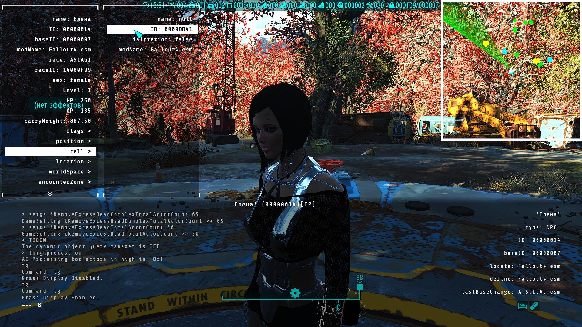 (Нажать на персонажа в консоли, потом нажать ctrl - выбрать cell - выбрать ID - сделать скрин)