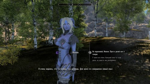 Помимо секса умеет танцевать, немного общаться, реагировать на врагов и воровство, расскажет свою историю и сможет научить нескольким заклинаниям паладина. С орками не общается, так что если ваш ГГ - орк, то можете мод не качать.