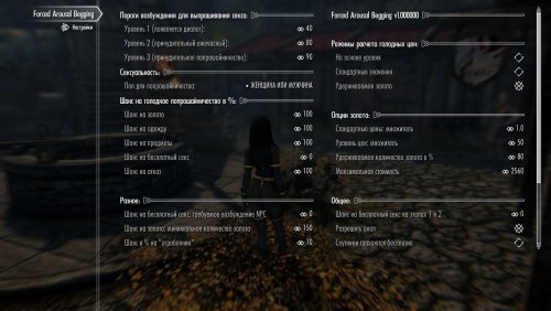 Мод заставляет вашу ЖГГ просить секс у прохожих при высоком уровне возбуждения. В игре 3 уровня возбуждения, для каждого свои диалоги. На первом уровне никакого принуждения нет, просто появляется диалог с просьбой секса. На втором уровне принуждение срабатывает раз в час, на третьем - постоянно, пока возбуждение не спадёт. NPC могут согласиться помочь, могут отказаться, могут потребовать с вас золото или взять вещами. А чему удивляться, ведь секс нужен не им, а вашей ЖГГ, так что пусть платит.