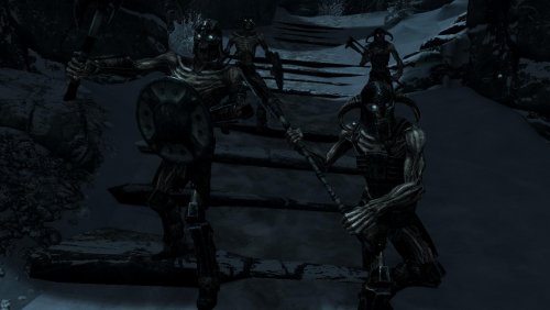 Теперь ночью вы можете столкнуться не только с [***] ночи, но и патрулями драугров. Днем они находятся около входов подземелий, а после 23 часов пускаются на патрулирование. После 5 часового обхода патруль возвращается назад в "патрульную сторожку". Они сеют смерть и убивают любого, кто встанет у них на пути. В патруле есть драугры - разведчики, драугры - мародеры, драугры - опустошители и драугульфы, злобные свирепые собаки