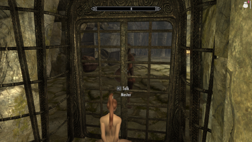 Когда наша персонажка оказывается порабощённой с помощью мода Sanguine Debauchery и приходит время ночи, то её хозяин при участии SD Patches https://amlgames.com/files/file/852-sd-patches/ пожелает найти клетку, что бы запереть там свою рабыню. Этот мод как раз и добавляет в разные локации эти самые клетки.