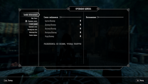 По сути, она представляет собой небольшую систему достижений, основанную на SexLab. У вас появляются различные списки, с кем и в каких количествах вы переспали, а достигнув определенной планки, можно получить как постоянные и довольно мощные баффы, так и новые заклинания. Плюс такая мелочь, как "воспоминания" -- вдруг сможет доставить вам улыбку?