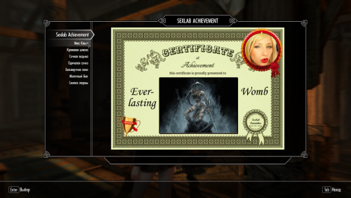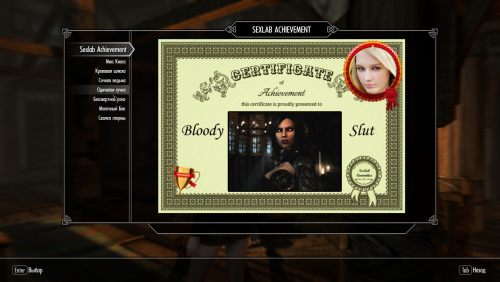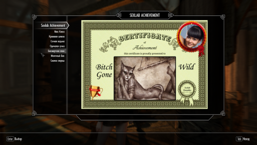 Если вам понравилась данная модификация, не поленитесь пройти по ссылке https://www.loverslab.com/files/file/3277-sexlab_achievement/ и сказать "Спасибо" автору, а так же по ссылке https://www.loverslab.com/files/file/9916-sexlab-achievement-se/ и поблагодарить того, кто портировал данную модификацию под SE.