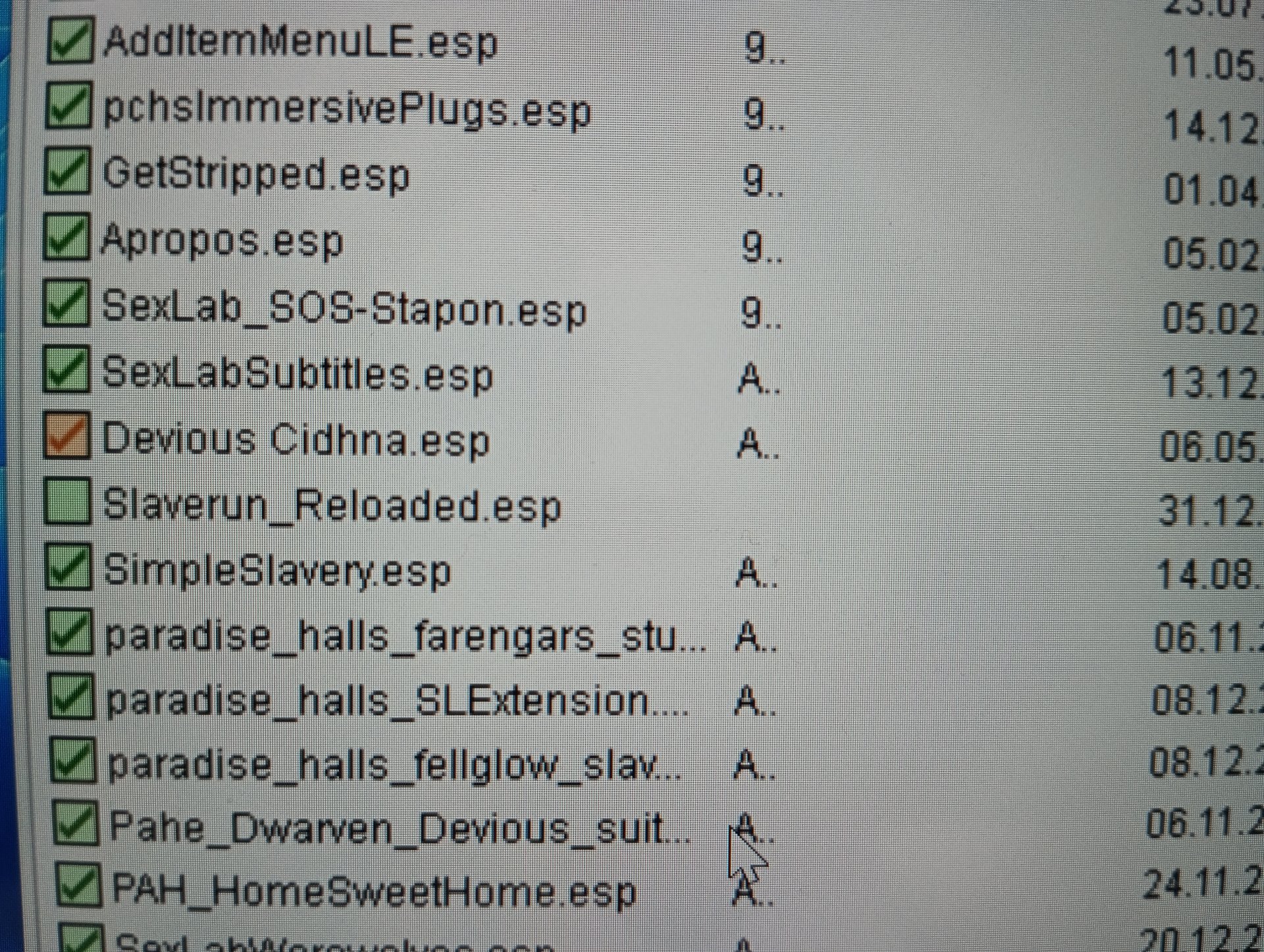 Открыл в рай баш все сравнил с лодером txt  и заметил 2 фигни, 1 это галочки нету в slaverun reoladed и оранжевая или Красная галочка на можно devious cidhna