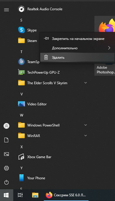 "One Drive" у меня уже удалён, так что покажу на примере "Скайпа":