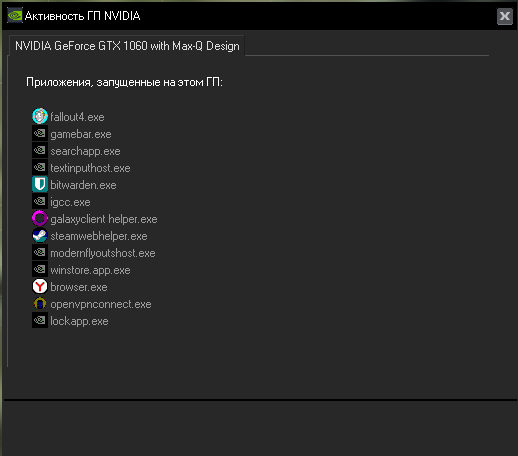 Еще можно порыться в настройках видеокарт и найти предпочтения для приложений. В выставить приоритет нвидиа для f4se_loader.exe Fallout4.exe Fallout4Launcher.exe