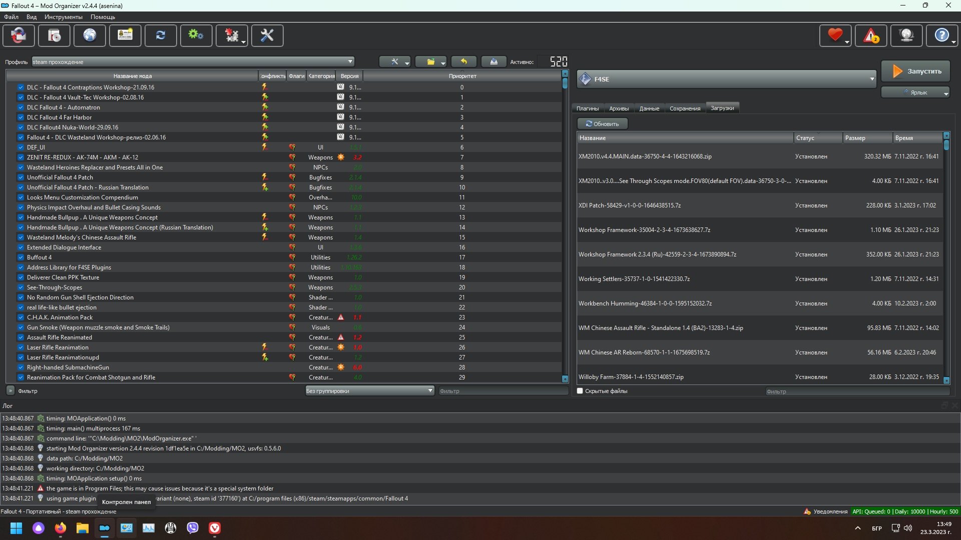 ... на этот мод https://gamer-mods.ru/load/fallout_4/gotovye_sborki_modov/sborka_fo4_be_sims2_horizon/305-1-0-13274 релиз 2.0 вышел и решил (смешно, в рифму получилось , а что делать, если в тебе есть поэтический талант, его не зароешь) новую игру начать , ... только вот нексус пыхтит, со словами - слыш ты, я замонался твои моды на себе тащить, вот ещё 1-2 добавишь и потом всё , баста, дальше сам как хочешь выкручивайся ... , сразу вопрос, а на МО2 есть лимит на установку модов или нет по определению ...