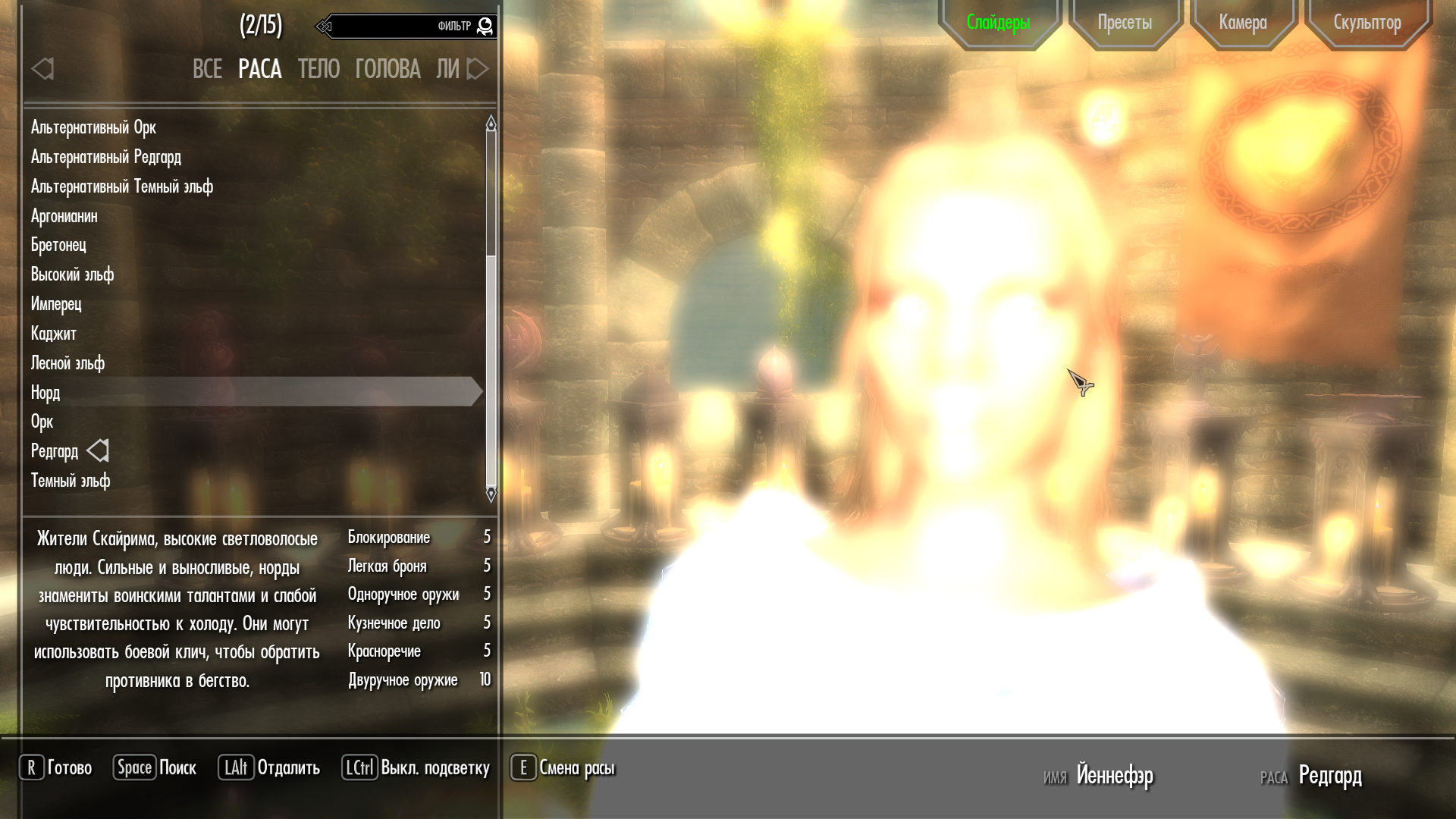 • Если этот персонаж вам не нравится, его всегда можно легко поменять применив талант - Альтернативная смена расы.