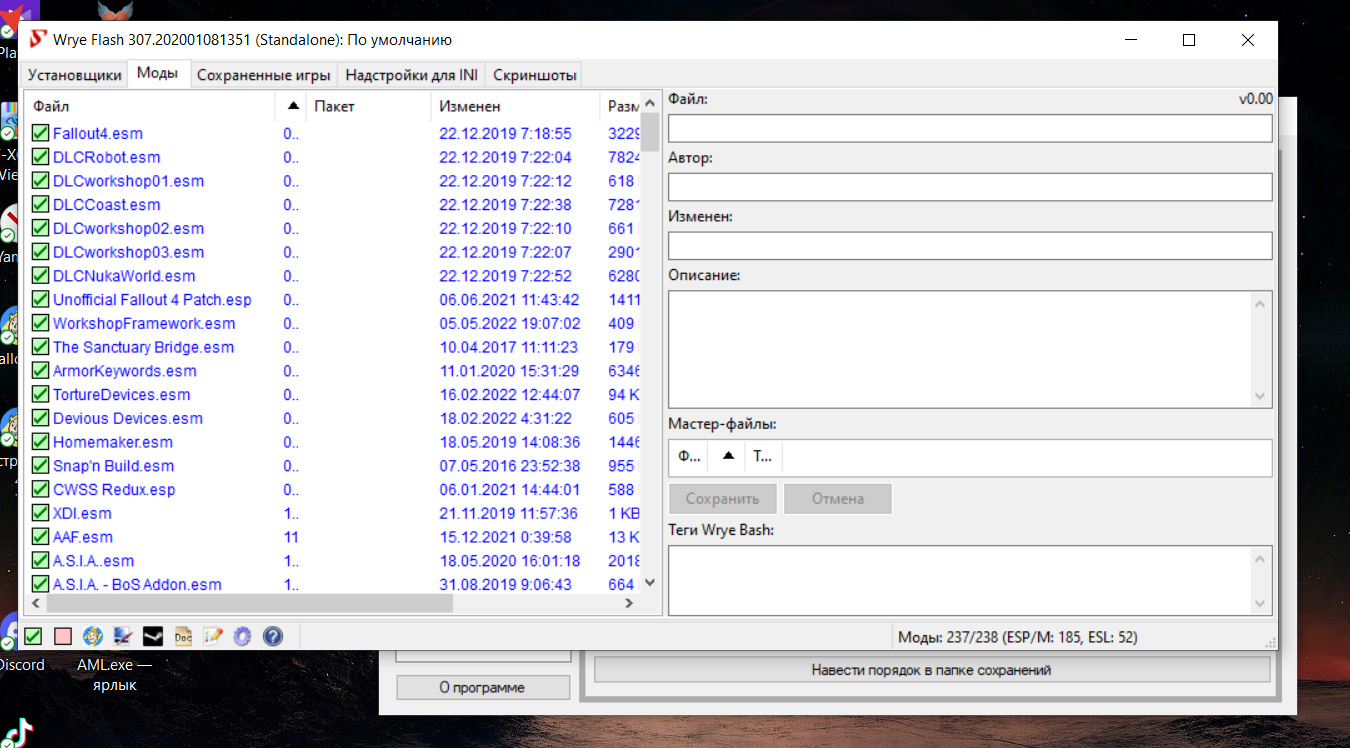 Если вы добавляете моды, следите за тем, чтобы конец порядка загрузки ВСЕГДА был таким!!!