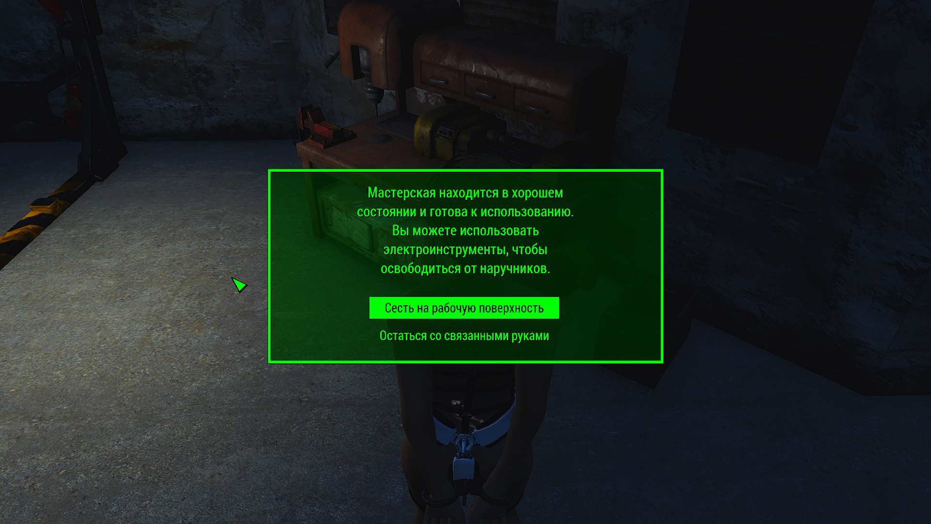 Что касаемо геймплея, то ответы на все вопросы есть в МСМ и пипбое. Снять наручники и дебафы можно там. МСМ конечно довольно сложный источник информации но практически все команды имеют подсказки.