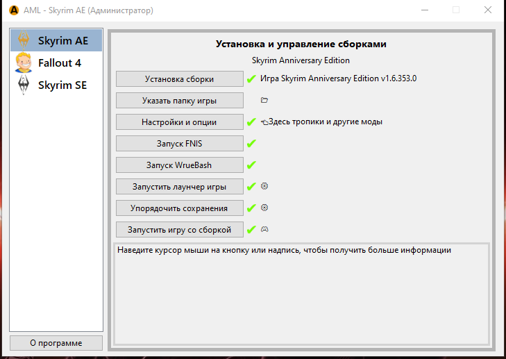 Не запускайте игру с ярлыков на рабочем столе или через Steam, только с кнопки приложения AML.