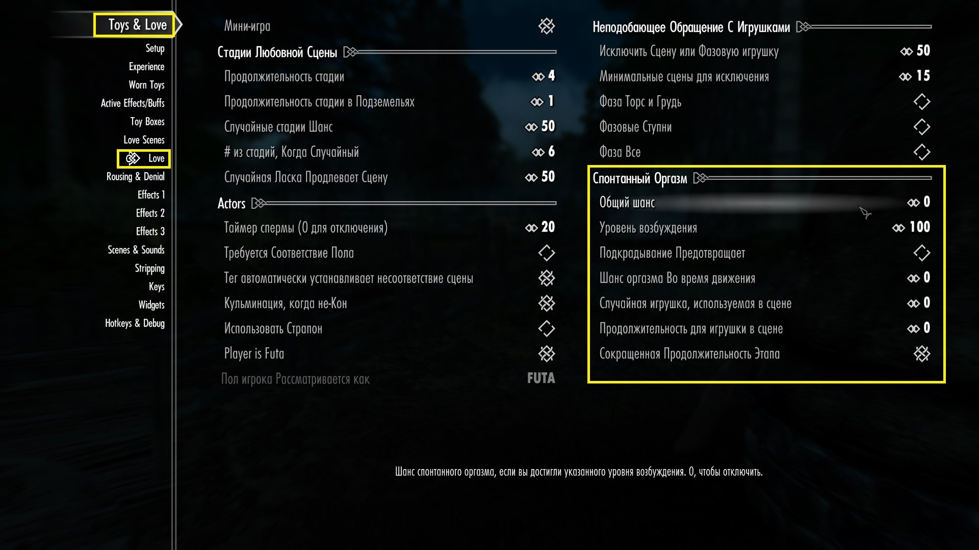 Главное меню игры ➡️ Настройки модов ➡️ Sclong of Skyrim