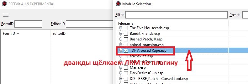Запускаем  SSEEdit, в списке выбираем наш мод, ждём его загрузки и сохраняем (пересохраняем)