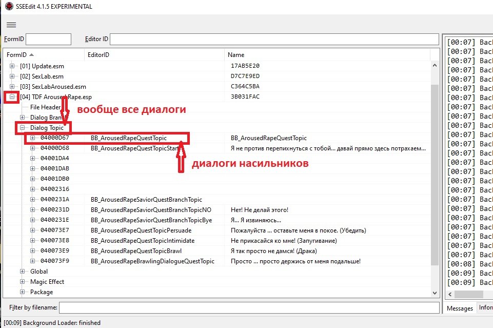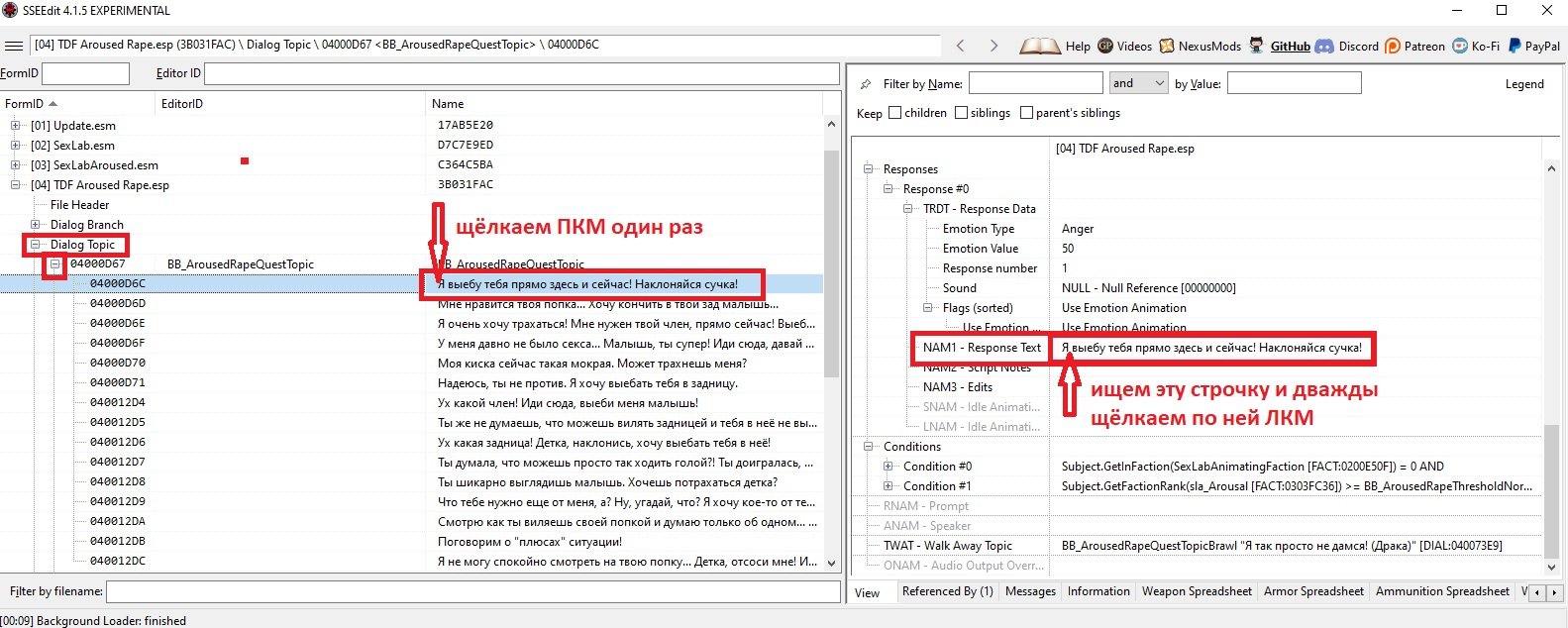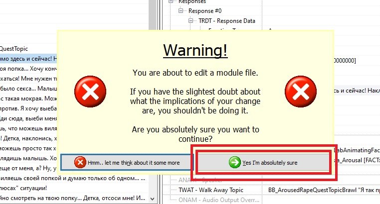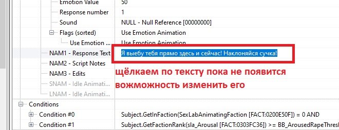 Открываем диалоги насильников и выбираем строчку для редактирования