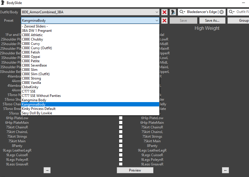 1) Хотелось бы поставить шмотку, например вот эту Вопрос, если ставить новую броню, на какой пресет её билдить через Bodyslide чтобы лишний раз ничего не менять?