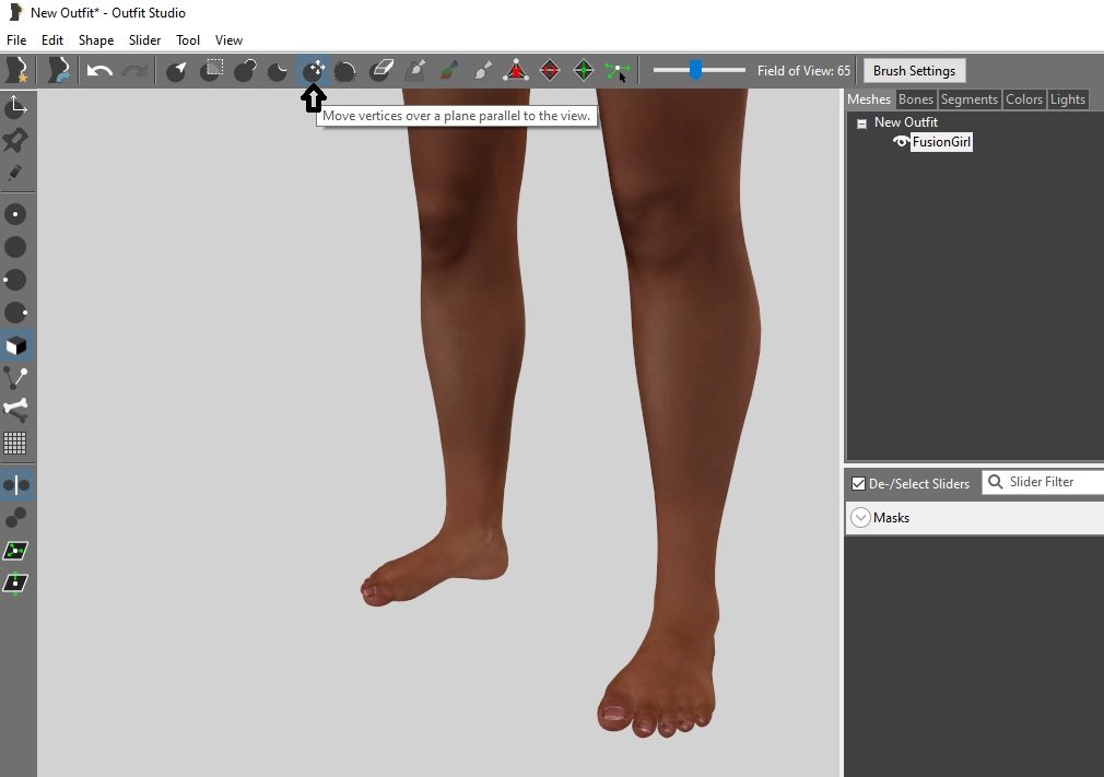 Наводишь на палец (к примеру) зажимаешь л.к. мыши и смещаешь в ту сторону куда тебе надо. Так поступаешь с любой точкой стопы, пока не понравится результат. Затем выбираешь другой инструмент: