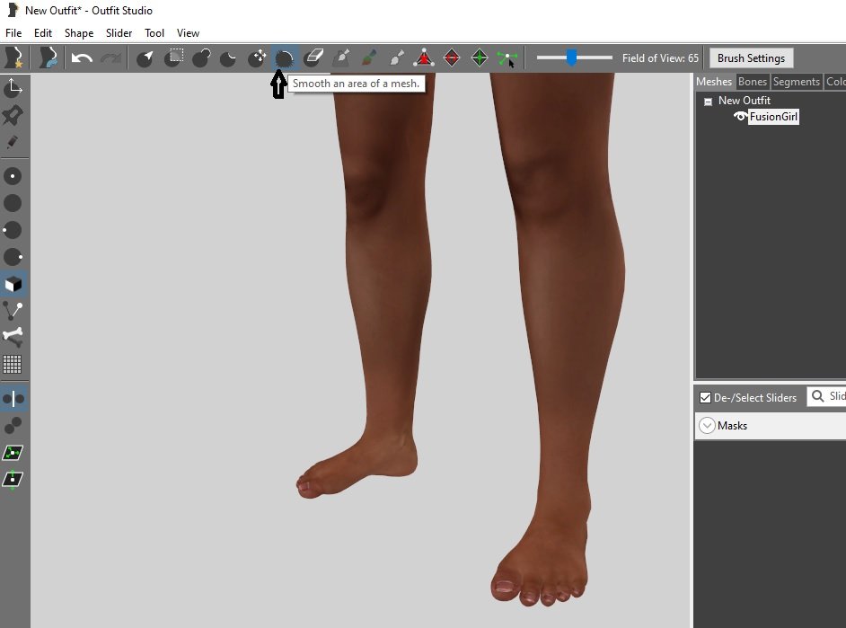 Наводишь на ступню, зажимаешь л.к. мыши и водишь по изменённым тобою местам стопы. Этим действием ты разгладишь не ровности и углы, которые появятся при первом действие.
