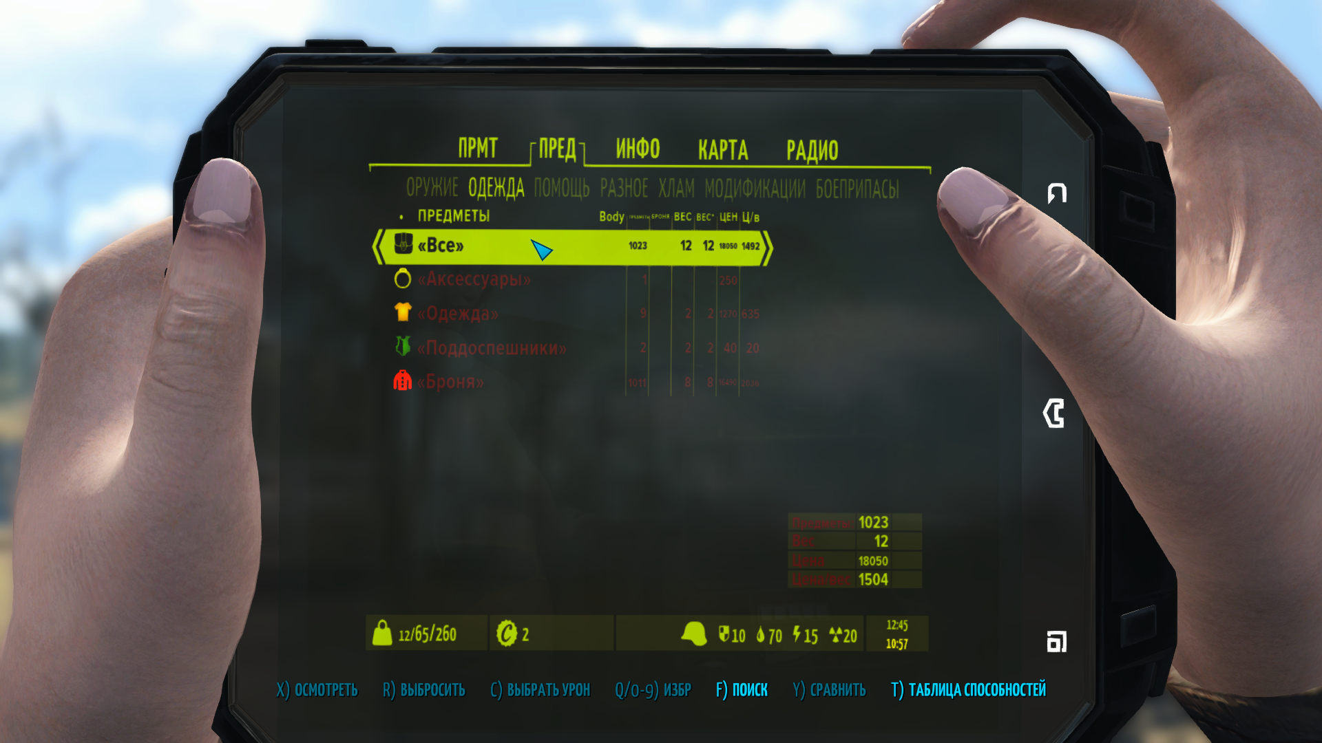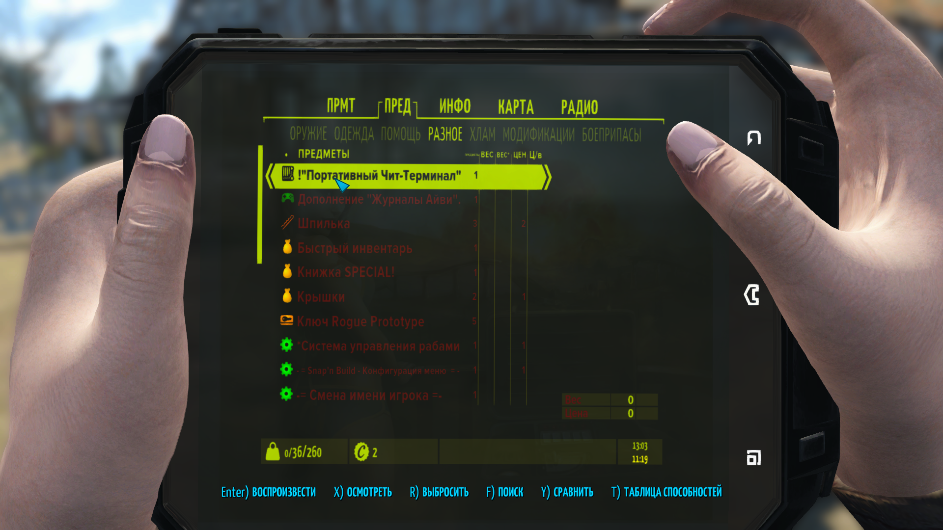 🟢Если у вас пропал пипбой и не отображается при открытии или вместо него голая рука, нажмите клавишу Ё и введите команду: