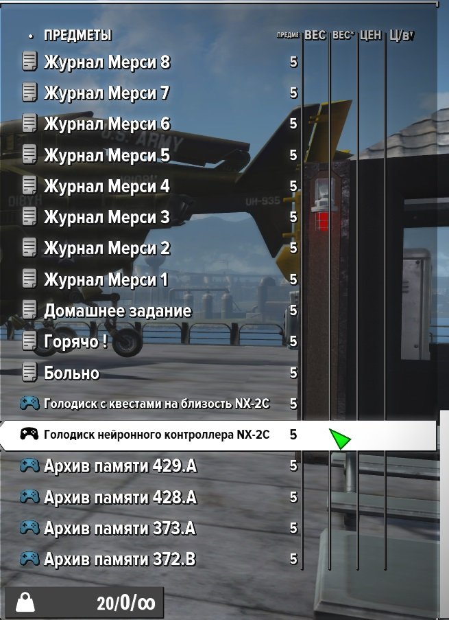 Сверху различные счетчики инвентаря (крышки, вес, адреналиновые инжекторы, ремонтные наборы и многое другое) и игровое время
