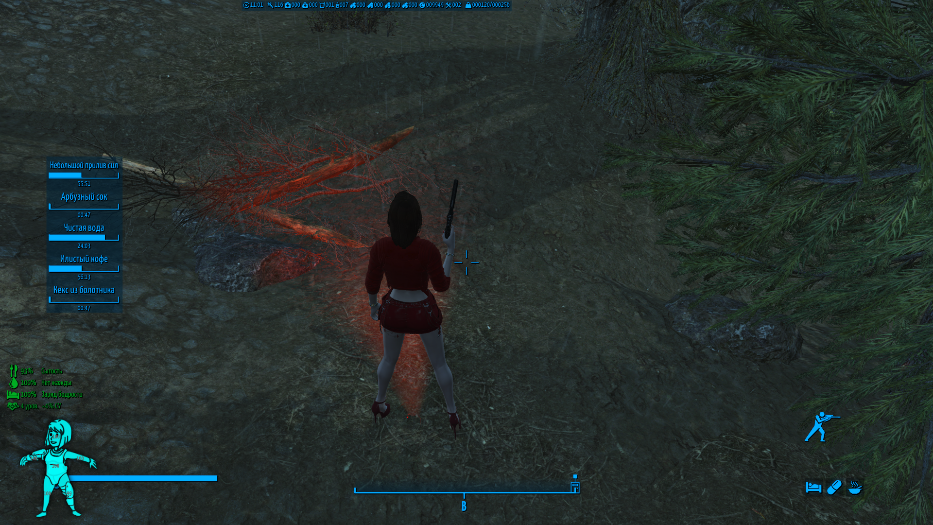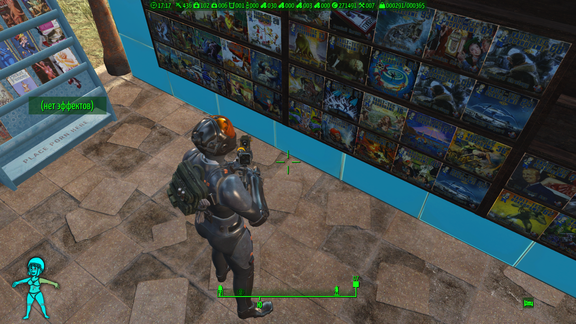 Слева (сверху вниз) - Виджеты активных эффектоа, Виджет Living In Pain (Можно не обращать внимания), Виджеты выживания(Не работают с AN76, только для режима выживания), Виджет волтбой(волтгерл) показывает степень повреджения конечностей.
