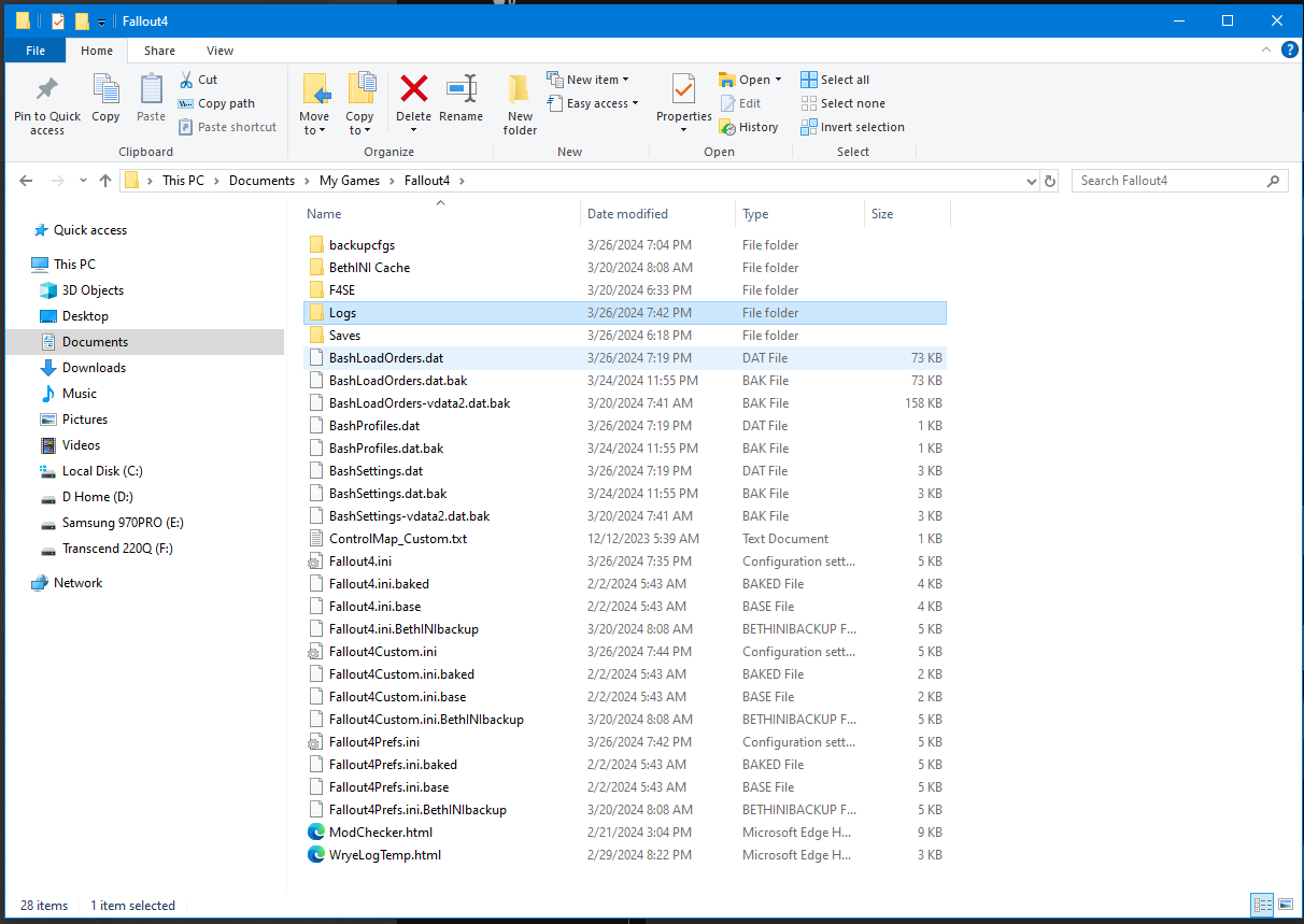 @Bebrik Так попробуем врубить papyrus в Fallout4.ini и словим вылет. Посмотрим что он скажет. Вруби его в секции [Papyrus], там bEnableLogging поставь на 1.