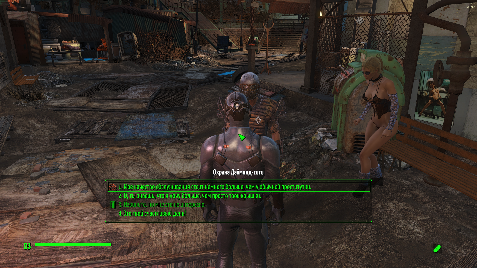 Полностью согласен: в ванильной игре очень хорошо сбалансированы как броня и оружие, так и постепенное развитие персонажа; поэтому Фоллаут 4 и стал таким популярным. И да, считайте меня "старовером", но мне нравится, когда на поле боя перс или НПС выглядит как воин в броне, а уже где то в постели становится секси - на этом контрасте и интерес!