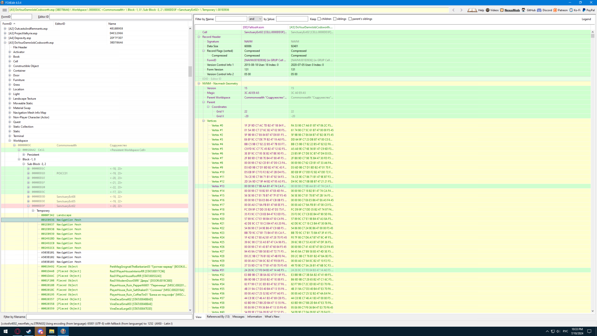 Пару слов о RSEIIBrothels. ОтшельникЪ вшил фикс от Nodtrial в основной esp, и переписал скрипт так чтобы он обращался к основному esp мода. Так что этот мод не будет ломать сейвы. НО, не стоит строить бордель в Сэнкчуари, иначе Престон и компания вернуться в Музей Конкорда. Тестили это неоднократно, с одним esp или двумя, без разницы, как только включается маяк борделя, Престон пакуется и идет в Музей. Видимо фикс от Nodtrial не предусмотрен для этого, только для предотвращения поломки сейвов.
