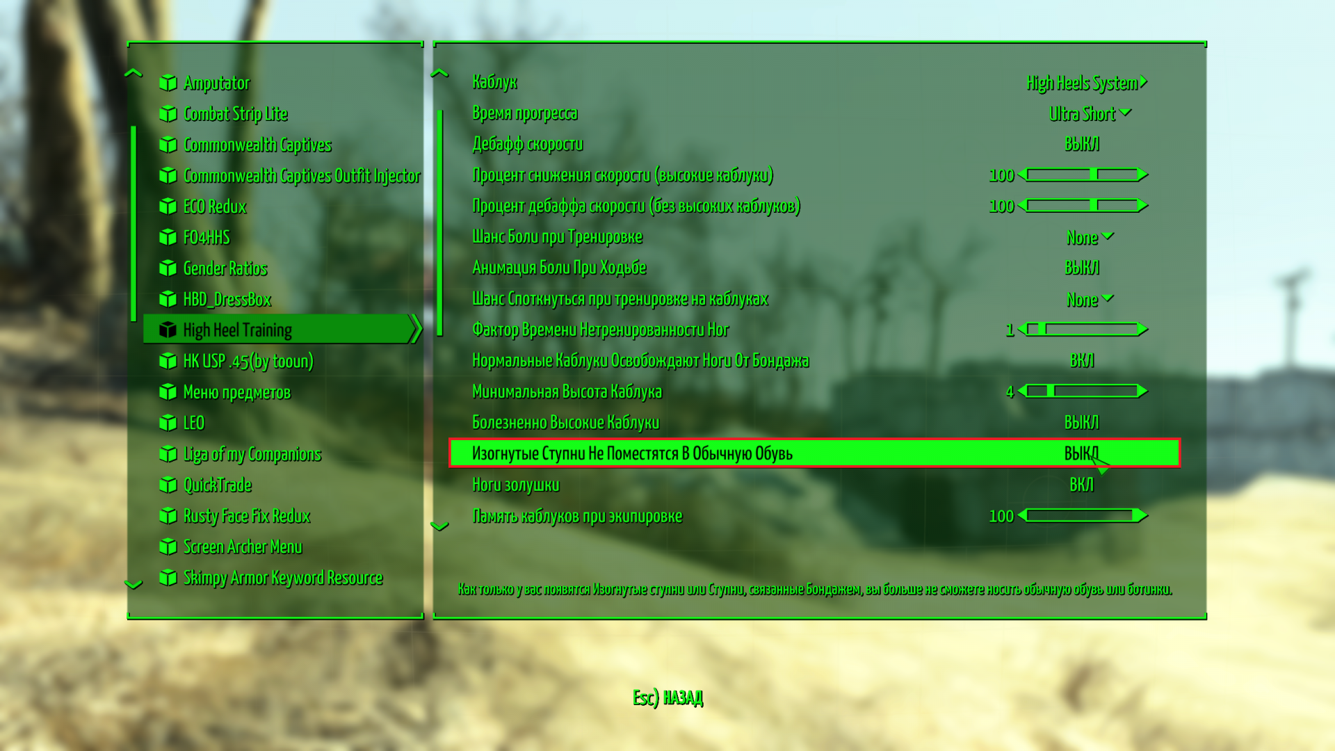 High Heel Training. Отруби опцию Изогнутые Ступни не помещаются в обычную обувь в его MCM меню.