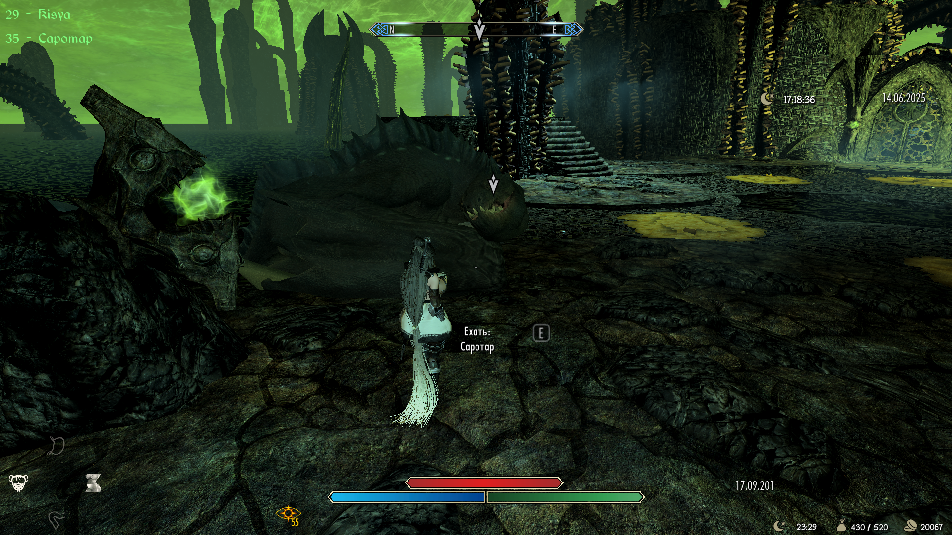 Осталось эту мадам прокатить на драконе, а то пока получается только дракона прокатить на мадм. Суди по всему это будет весьма не просто или вовсе невозможно, кто как выкручивался. А не садится оно из-за основных модов на скилет и анимации судя по инфе с разных источников. Мб есть мод Fix. Или жать tcl и гнать пехом до мирака?