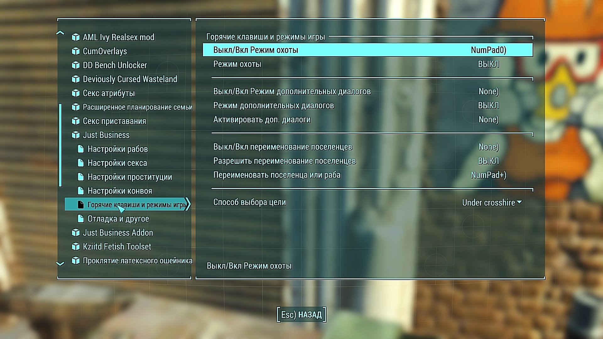 А режим рабовладейской охоты включается горячей клавишей. Назначается там же в MCM.