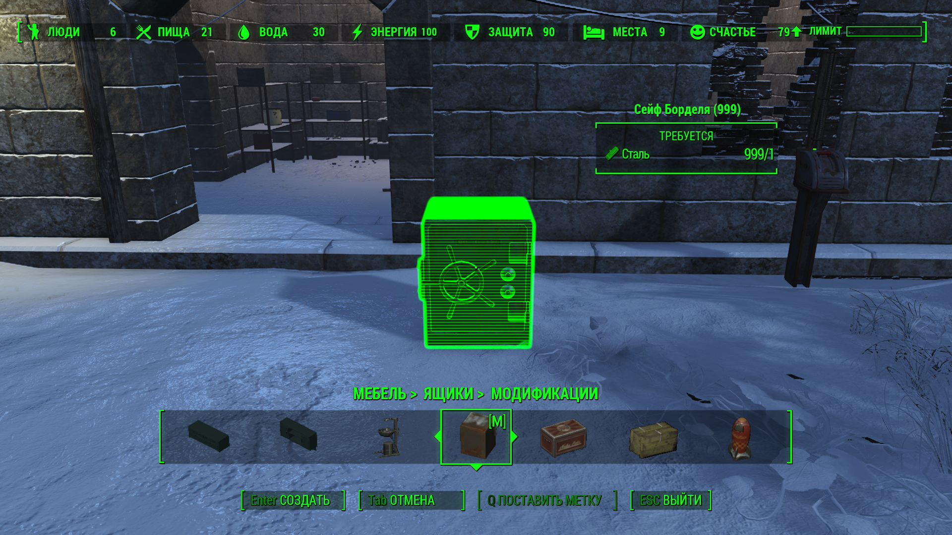 Мебель -> Ящики -> Модификации (долго листать) -> Сейф борделя.