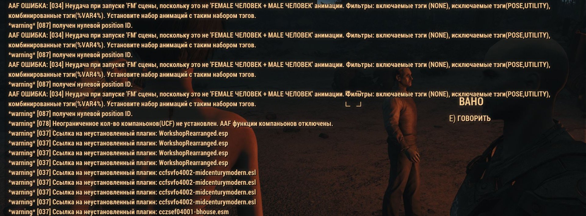 Похоже есть несовместимость с различными другими геймплейными модами типа BDH, SH, Violate, RSA2-CSA, Provocative Perks, Combat Strip Lite, DD + DCW. Так что такой мод как OTRA надо держать в отдельном профиле на подобии Nuka Ride или Commonwealth Slavers.