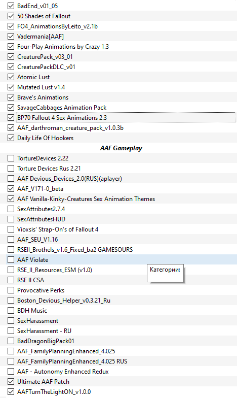 Из секс модов только сам AAF и анимации.