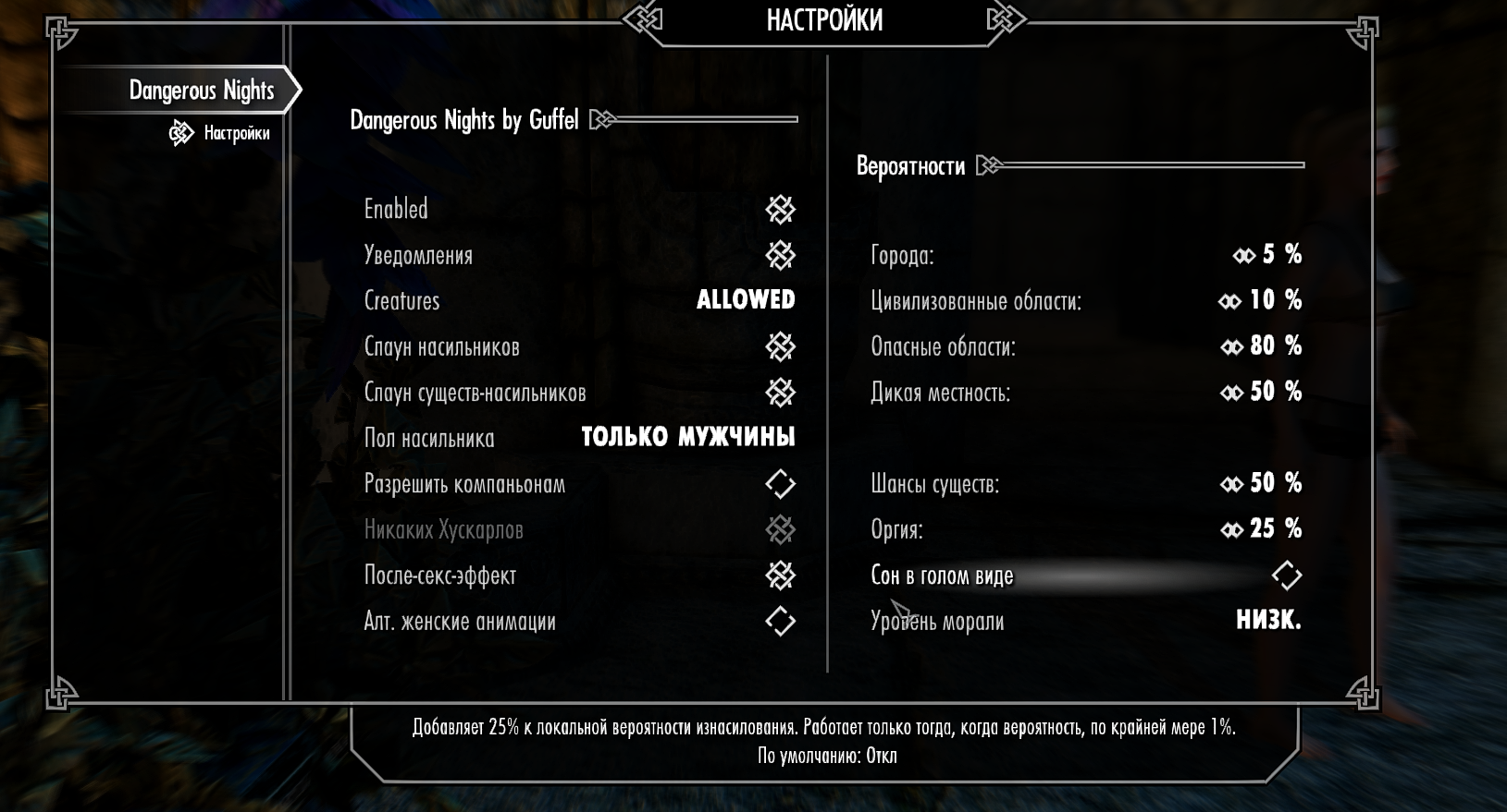 В Вайтране подбегает незнакомка и раздевает ГГ. Скажите в каком моде это можно отключить?
