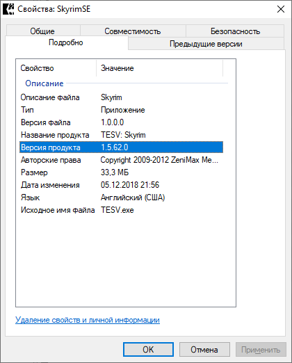 После установки игры свойства файла  SkyrimSE на вкладке Подробно дожны быть такими