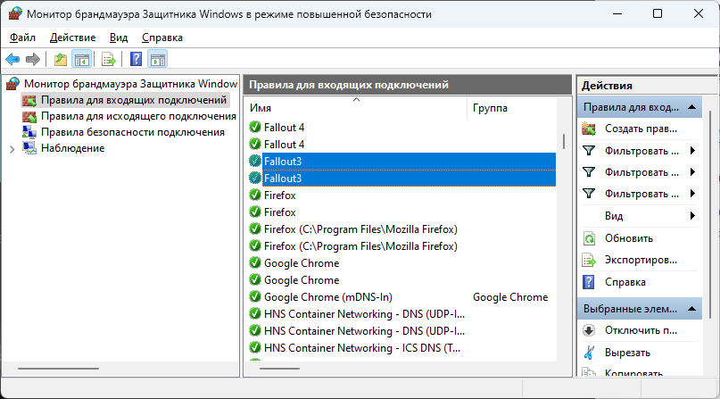 надо сделать в нем чтобы правила для входящих исходящих стали зелеными.