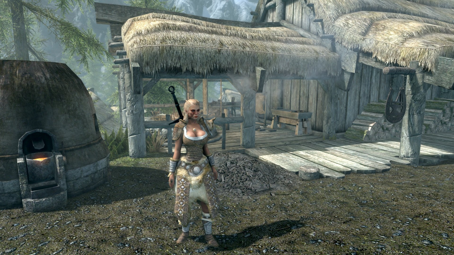 Цель альбома - демонстрация локаций из рукотворного мода, ну и для соответствия стилю, демонстрация моей героини с реплейсером Touched by Dibella, здесь не будет позеров, ENB, и прочего, только девушка, на фоне пейзажей.