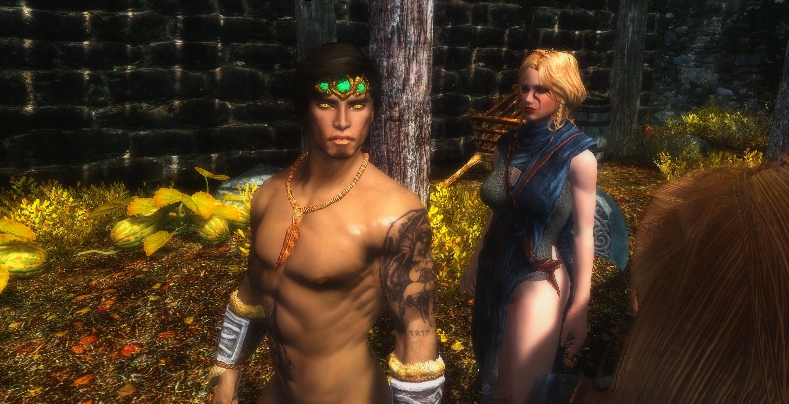 Эйран в Рифтене "отрабатывает" свою привлекательность. Стражницы едва его завидев, окружают, и начинают с раздевания )))