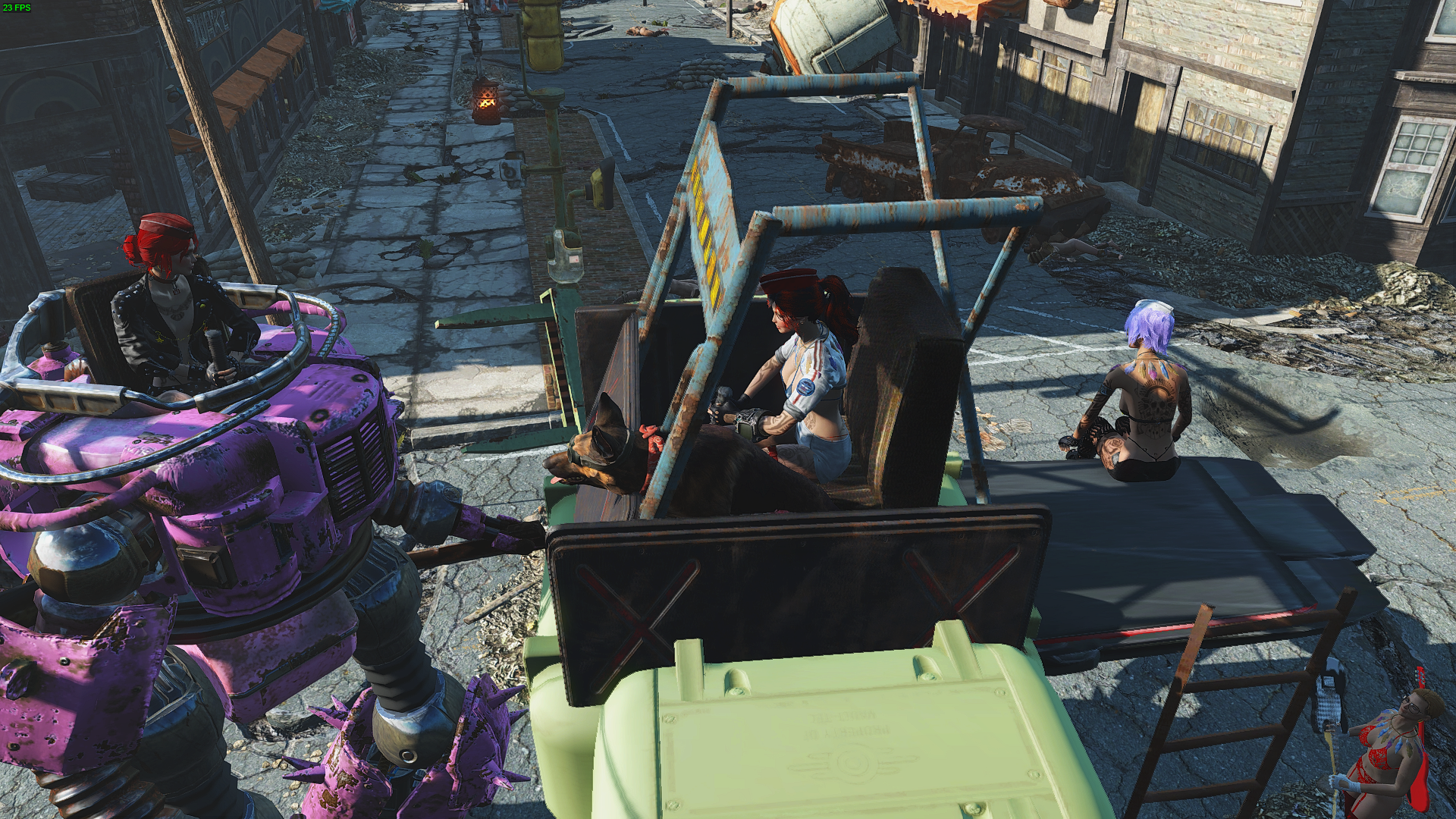 Алиса на ездовом роботе "Тип-Гэллоп", а Кейт на розовом "Тип-Штурмотрон". Парк Алисы пополнился ещё двумя трофейными ездовыми роботами.